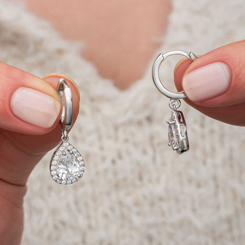 Silver White Zircon Stone Drop Women's Earrings White zircon stone is generally considered to be the symbol of purity and cleanliness. This stone adds beauty to its surroundings by reflecting light while also representing spiritual purification. Its drop-shaped design offers an elegant look. Silver white zircon stone drop women's earrings are a perfect option as a birthday gift, Valentine's Day gift or a gift for mothers on special occasions. Silver hoop women's earrings are made of 925 sterling silver. Rhodium plated on the silver. Rhodium plated silver drop women's earrings preserve their shine for a long time and oxidation is delayed. Like all women's earrings, silver drop women's earrings are produced by hand. Due to silver and precious stones, there may be a ± 10% deviation in the average product weight. Width: 1.00 cm Earring Diameter: 2.60 cm Average Weight: 4.00 gr.