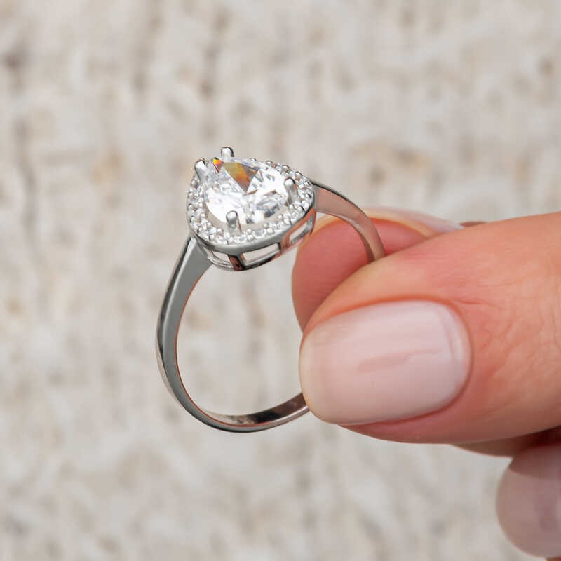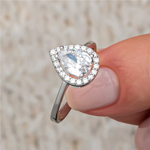 Silver White Zircon Stone Drop Women's Ring White zircon stone generally symbolizes purity, honesty and loyalty. The drop shape symbolizes fluidity and continuity. This ring can be a nice gift option to express love, loyalty and emotional depth. This drop ring model is made of 925 sterling silver. Rhodium plated silver. Rhodium plated silver ring models preserve their shine for a long time and oxidation is delayed. As with all silver rings, the silver zircon stone women's ring model is produced entirely by hand. Due to silver and precious stones, there may be ± 10% deviation in the average product weight. Ring Width: 1.00 cm. Ring Length: 1.10 cm. Average Weight: 2.00 gr.