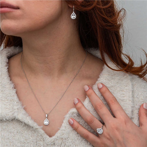 Silver White Zircon Stone Drop Women's Set Sets, which are among the top choices of women on special occasions, are the savior of many women. Zircon is generally considered a precious stone. White zircon represents purity, nobility and elegance. This set model is made of 925 sterling silver. Rhodium plated silver. Rhodium plated silver set models preserve their shine for a long time and oxidation is delayed. As with all silver sets, the silver zircon stone women's set model is produced entirely by hand. Due to silver and precious stones, there may be ± 10% deviation in the average product weight. Ring Width: 1.00 cm. Ring Length: 1.10 cm. Necklace Width: 1.0 cm. Necklace Length: 2.00 cm. Earring Width: 1.00 cm. Earring Length: 2.50 cm. Total Weight: 9.00 gr