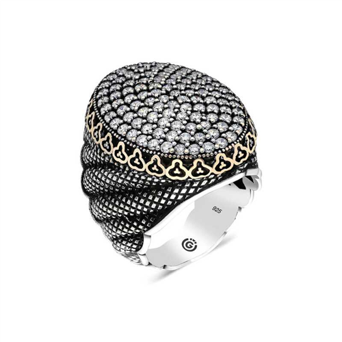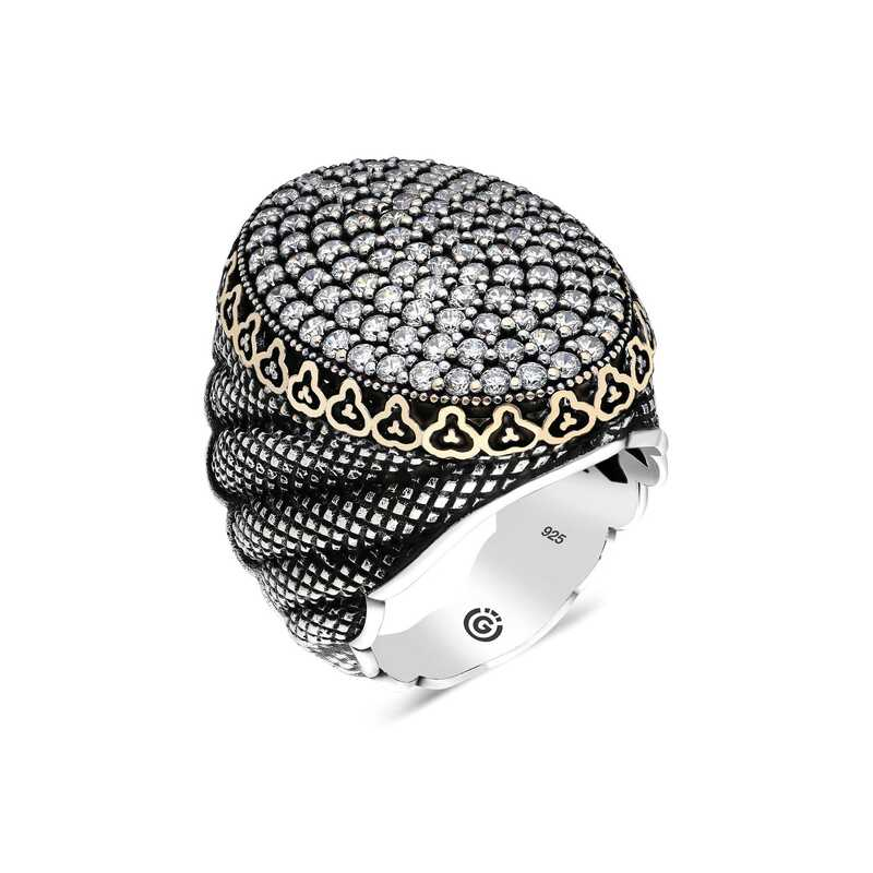 Silver White Zircon Stone Oval Men's Ring This men's ring model, made of zircon white stone stones on silver, is a stylish accessory that you can use at any time of the day. You can gift this ring to yourself or your loved ones on your birthday, Father's Day or special occasions. The white stone men's ring model is made of 925 sterling silver. Oxide coating is applied on the silver. Oxide coated silver men's ring models preserve their shine for a long time. As with all men's rings, the silver zircon white stone men's ring model is also handmade. Due to silver and precious stones, there may be ± 10% deviation in the average product weight.Width: 2.30 cmLength: 3.20 cmAvg. Weight: 26.50 gr.