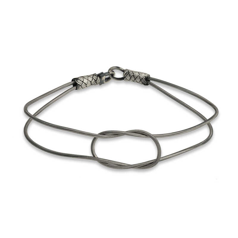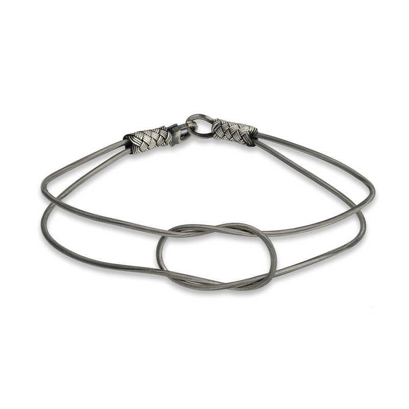 Silver Wish Knot Kazaziye Knit BraceletKazaziye, kazazlık or kazaz; is a handicraft made from pure silver wires using knitting techniques. It is used in prayer beads and can also be made as a bracelet or necklace. The knitted kazaziye bracelet is completely handmade. For those who want to achieve a stylish look, the timeless kazaziye knit bracelet is waiting for you. The silver wish knot knitted kazaziye bracelet is a perfect option for a birthday gift, Valentine's Day gift or for special occasions. The silver bracelet is made of 1000 carat pure silver and is 100% handcrafted. The silver is oxidized coated. Due to silver and precious stones, there may be a ± 10% deviation in the average product weight.Width: 1.30 cmLength: 19.00 cmAverage Weight: 3.90 gr.