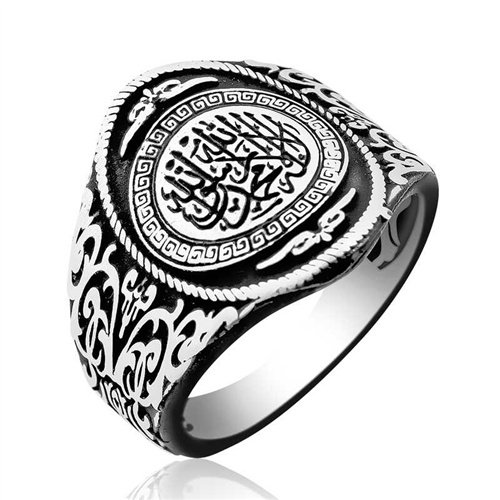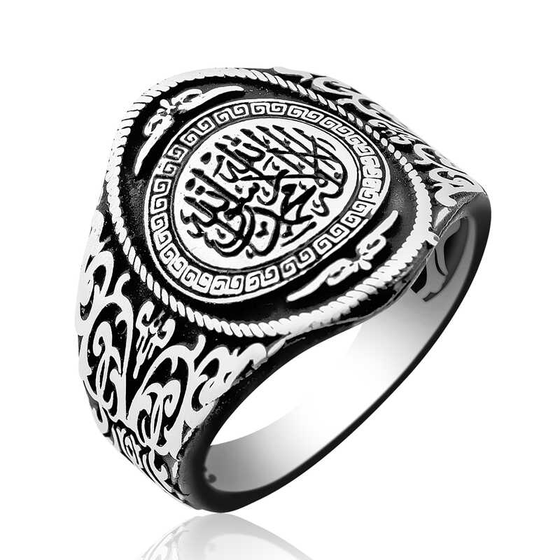 Silver Kalima-i Tawhid Men's RingThe origin of the Kalima-i Tawhid consists of the sentences “There is no god but Allah, Muhammad is the messenger of Allah” and is translated into Turkish as “There is no god but Allah, Muhammad (pbuh) is the messenger of Allah.” The Kalima-i Tawhid is built on two foundations that form the principles of belief and therefore the essence of religion. The first of these emphasizes the supremacy and unity of Allah, while the second emphasizes the prophethood that enables His relationship with humanity. You can choose this elegant and spiritually valuable ring as a birthday gift or Valentine's Day gift on special occasions. The Kalima-i Tawhid ring is made of 925 sterling silver. The ring is oxidized. Oxide-coated silver gives the ring an aged appearance. As with the silver Kalima-i Tawhid men's ring model, all silver ring models are produced entirely by hand. Due to the silver and precious stones, there may be a +10% deviation from the average product weight.Width: 1.50 cmLength: 2.00 cmAvg. Weight: 10.00 gr.