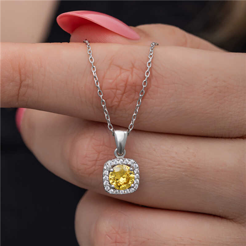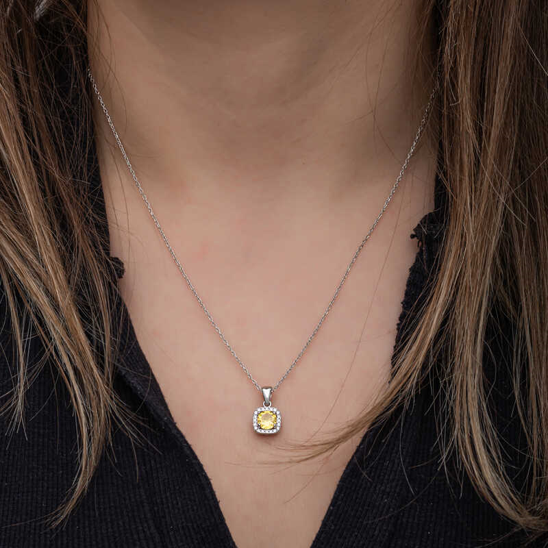 Silver Yellow Baguette Stone Women's Necklace The baguette stone women's necklace, which will never go out of fashion, is reinterpreted in different styles with today's jewelry. The eye-catching sparkle of zircon will surround you. This silver yellow baguette stone women's necklace, which you and your loved ones will enjoy wearing, will also be one of the best gifts to share your love. The product is made of 925 sterling silver. Rhodium plated on silver. Rhodium plated products preserve their shine for a long time and oxidation is delayed. The average chain length is 45 cm. The stones on it are zircon and baguette. Like all silver necklaces, the silver yellow baguette stone women's necklace is also handmade. Due to silver and precious stones, there may be ± 10% deviation in the average product weight. Width: 0.80 cm Length: 1.10 cm Chain Length: 45 cm Average Weight: 3.00 gr.
