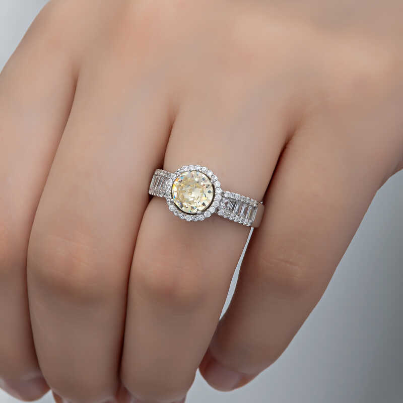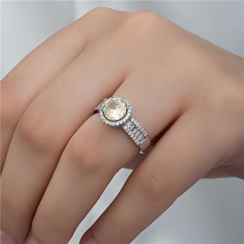 Silver Yellow Solitaire Women's RingThis specially designed solitaire ring is made of 925 sterling silver. Rhodium plating is applied to the silver. Rhodium-plated women's silver ring models preserve their shine for a long time and delay oxidation. The stones on the ring are zircon and baguette. It is a perfect gift option that you can give to your loved one on birthdays, Valentine's Day and special occasions. As with all of our silver women's ring models, this solitaire women's ring is also entirely handmade. Due to silver and precious stones, there may be a ± 10% deviation from the average product weight.Width: 2.10 cmLength: 2.60 cmAverage Weight: 4.20 gr.