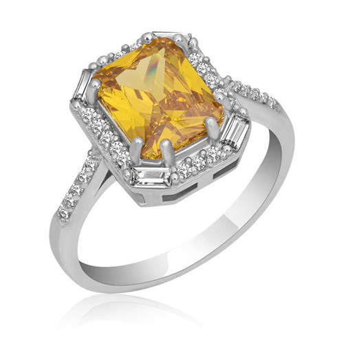 Silver Yellow Baguette Square Women's RingThis specially designed yellow baguette square ring, which you can easily use in daily life, is made of 925 sterling silver. Rhodium plated silver. Rhodium plated women's silver ring models preserve their shine for a long time and oxidation is delayed. The stones on the ring are zircon. It is a perfect gift option for your loved one on birthdays, Valentine's Day and special occasions. As with all of our silver women's ring models, this baguette cut women's ring is also produced entirely by hand. Due to silver and precious stones, there may be ± 10% deviation from the average product weight. Width: 1.90 cm.Length: 2.40 cm.Avg. Weight: 3.40 gr.
