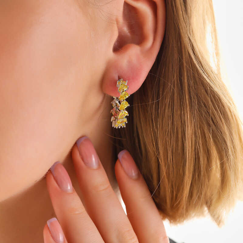 Silver Yellow Stone Drop Stud Women's EarringsThis style of earring made of zircon stones, preferred by young people and those who feel young, will be an accessory that you will enjoy using. Yellow stone drop women's earrings are made of 925 sterling silver. The silver yellow stone drop women's earrings are rhodium plated. Rhodium plated silver women's earrings preserve their shine for a long time. How about being the star of the night with these sparkling earrings that you can love to wear on special occasions? Like all silver women's earrings, the silver yellow stone drop women's earrings are also handmade. Due to silver and precious stones, there may be a ± 10% deviation in the specified product weight.Earring Width: 2.40 cmEarring Length: 2.60 cmAverage Weight: 6.50 gr
