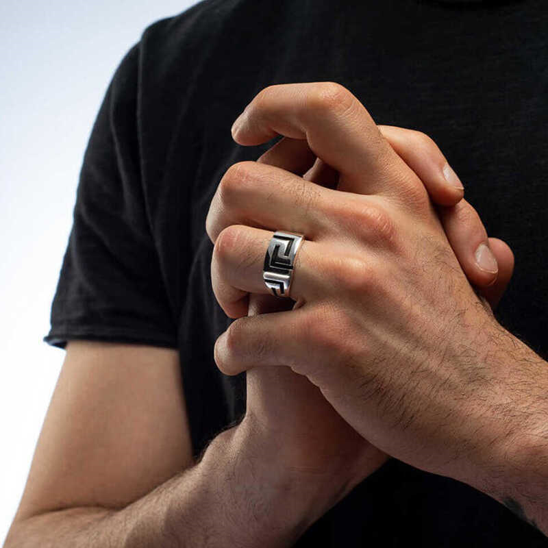 Silver Zigzag Patterned Men's RingMen choose from thousands of classic and sporty varieties when choosing jewelry for themselves. The highest quality and stylish silver rings are offered to men. Why not a nice silver ring to impress a woman? You can make your loved ones happy by gifting them a silver zigzag patterned men's ring. The zigzag patterned men's ring is made of 925 sterling silver. Oxidized silver is coated. Oxidized silver men's rings achieve an authentic look. Like all silver men's ring models, the silver zigzag patterned men's ring is produced entirely by hand. Due to silver and precious stones, there may be a ± 10% deviation in the average product weight.Width: 1.70 cmLength: 1.00 cmAverage Weight: 6.50 gr.