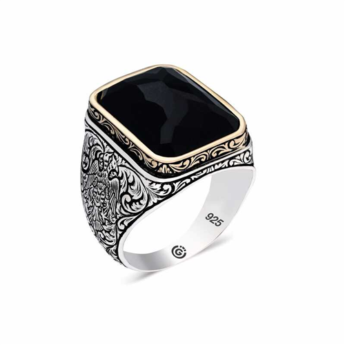 Silver Zircon Black Stone Square Men's RingThis men's ring model, made of zircon Black Stone on silver, is a stylish accessory that you can use at any time of the day. You can gift this ring to yourself or your loved ones on your birthday, Father's Day or special occasions. Black stone square ring men's ring model is made of 925 sterling silver. Oxide coating is applied on the silver. Oxide coating preserves its shine for a long time. As with all men's rings, the silver zircon Black stone square men's ring model is also handmade. Due to silver and precious stones, there may be a ± 10% deviation from the average product weight.Average Weight: 17.00 gr.