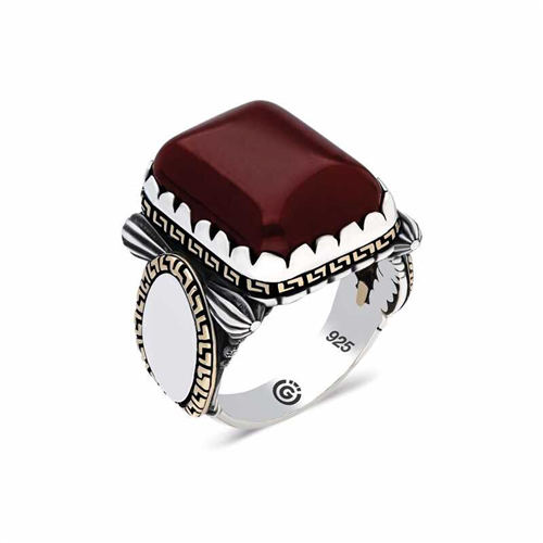 Silver Zircon Burgundy Agate Stone Square Men's RingThis men's ring model, made of zircon Burgundy Agate Stone on silver, is a stylish accessory that you can use at any time of the day. You can gift this ring to yourself or your loved ones on your birthday, Father's Day or special occasions. Burgundy agate stone square ring men's ring model is made of 925 sterling silver. Oxide coating is applied on the silver. Oxide coating preserves its shine for a long time. As with all men's rings, the silver zircon Burgundy Agate stone square men's ring model is also handmade. Due to silver and precious stones, there may be a ± 10% deviation from the average product weight.Average Weight: 17.00 gr.
