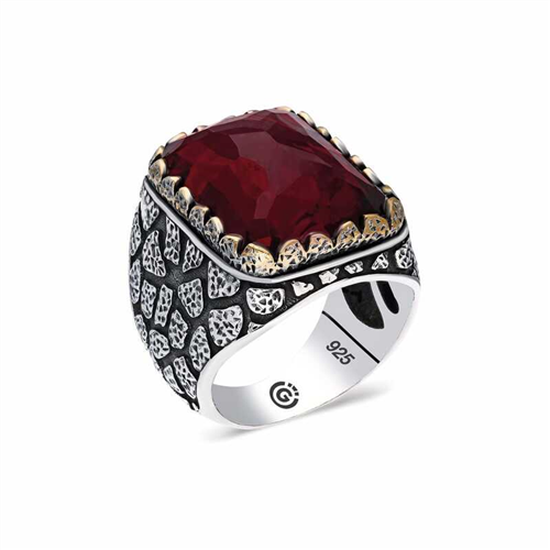 Silver Zircon Burgundy Stone Square Men's RingThis men's ring model, made of zircon Burgundy stones on silver, is a stylish accessory that you can use at any time of the day. You can gift this ring to yourself or your loved ones on your birthday, Father's Day or special occasions. The burgundy stone men's ring model is made of 925 sterling silver. Oxide coating is applied on the silver. Oxide coating preserves its shine for a long time. As with all men's rings, the silver zircon Burgundy Square men's ring model is produced by hand. Due to silver and precious stones, there may be a ± 10% deviation from the average product weight.Average Weight: 17.00 gr.