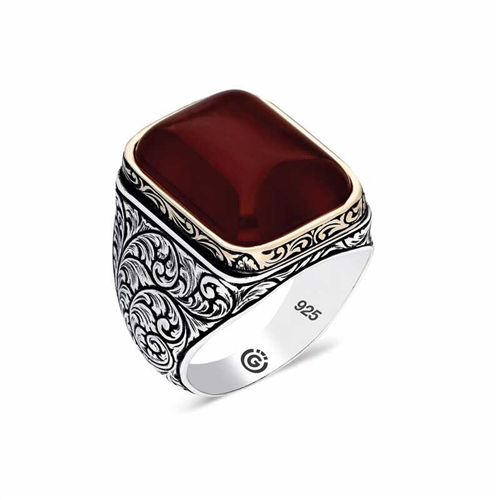 Silver Zircon Dark Burgundy Stone Square Men's RingThis men's ring model, made of zircon Dark Burgundy Stone on silver, is a stylish accessory that you can use at any time of the day. You can gift this ring to yourself or your loved ones on your birthday, Father's Day or special occasions. The burgundy stone square ring men's ring model is made of 925 sterling silver. Oxide coating is applied on the silver. Oxide coating preserves its shine for a long time. As with all men's rings, the silver zircon dark Burgundy stone square men's ring model is produced by hand. Due to silver and precious stones, there may be a ± 10% deviation from the average product weight.Average Weight: 17.00 gr.