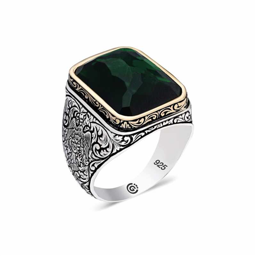 Silver Zircon Green Stone Square Men's RingThis men's ring model, made of zircon green stone on silver, is a stylish accessory that you can use at any time of the day. You can gift this ring to yourself or your loved ones on your birthday, Father's Day or special occasions. Green stone square ring men's ring model is made of 925 sterling silver. Oxide coating is applied on the silver. Oxide coating preserves its shine for a long time. As with all men's rings, the silver zircon green stone square men's ring model is also handmade. Due to silver and precious stones, there may be a ± 10% deviation from the average product weight.Average Weight: 17.00 gr.