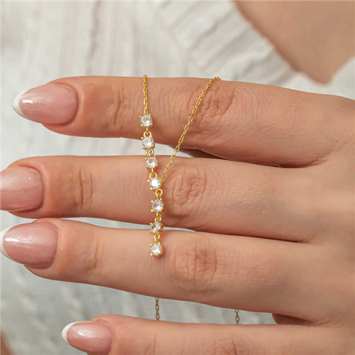 Silver Zircon Row Stone Gold Women's Necklace With the dazzling shine of silver and zircon, you can give a meaningful and beautiful gift with a row stone necklace, a symbol of love and affection, and add meaning to your love. A row stone necklace that you and your loved ones will enjoy wearing will be one of the best gifts you can give to your lover due to its meaning. Women's row stone necklace is made of 925 sterling silver. Gold plated silver. Gold plated silver women's necklace models preserve their shine for a long time and oxidation is delayed. The stones on the necklace are zircon. The average silver chain length is 45 cm. Like all silver women's necklace models, the silver row stone women's necklace model is also handmade. Due to silver and precious stones, there may be a ± 10% deviation in the specified product weight. Width: 0.40 cm Length: 3.50 cm Average Weight: 2 gr.