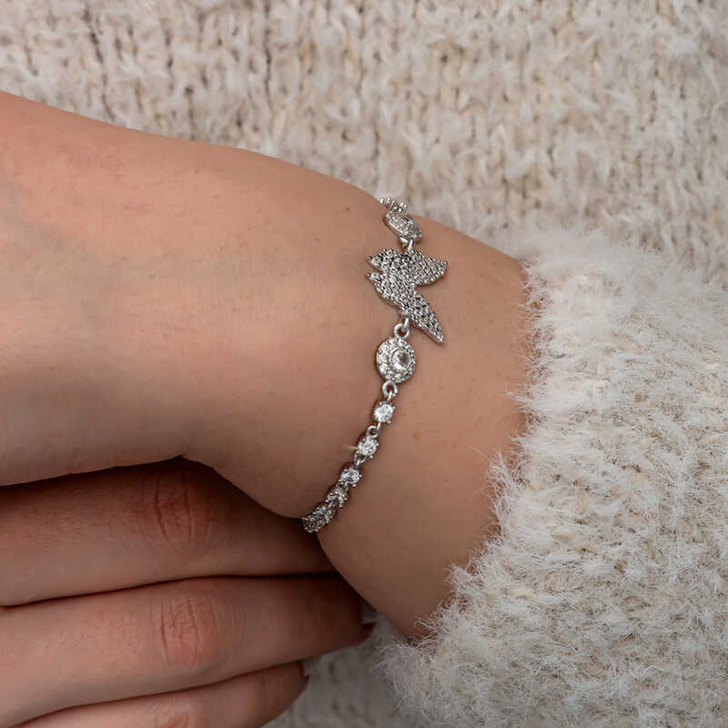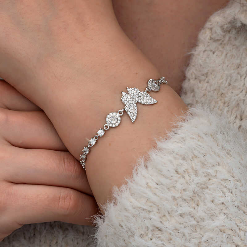 Silver Zircon Stone Butterfly Women's Bracelet Butterfly is one of the most popular motifs preferred by women. It reminds its lovers of the mystery of nature and the richness of human imagination. The spring butterfly, symbolizing freedom, innocence and purity, is the expression of pure love and affection. This bracelet full of love is made of 925 sterling silver. The silver is rhodium plated. All rhodium-plated silver women's bracelet models preserve their shine for a long time. Like all our silver women's bracelet models, the silver butterfly bracelet is also handmade. Due to silver and precious stones, there may be ± 10% deviation in the average product weight. Width: 1.50 cm Length: 1.50 cm Bracelet Length: 21 cm Average Weight: 5.30 gr.