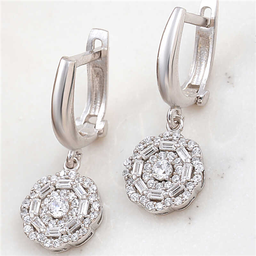Silver Zircon Stone Flower Women's EarringsThis specially designed flower women's earring made of zircon and tiny baguette stones is made of 925 sterling silver. You can make your first love, your mother, your wife or your girlfriend, feel how much you love her on special occasions and make them happy. Show how much they add to your life with this earring that your loved ones will love to use. The silver zircon stone flower women's earring model is rhodium plated. All silver earring models with rhodium plating preserve their shine for a long time and oxidation is delayed. Like all silver women's earring models, silver zircon stone flower women's earrings are also handmade. Due to silver and precious stones, there may be a ± 10% deviation in the average product weight.Earring Width: 1.00 cmEarring Length: 2.60 cmEarring Weight: 3.50 gr.