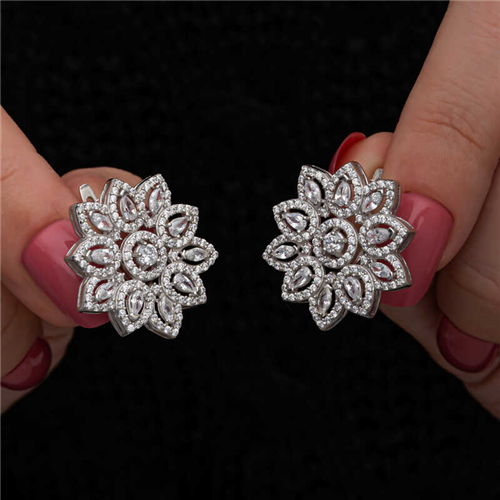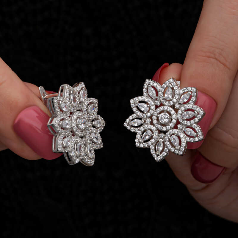 Silver Zircon Stone Flower Women's EarringsThis specially designed flower women's earring made of zircon and tiny baguette stones is made of 925 sterling silver. You can make your first love, your mother, your wife or your girlfriend, feel how much you love her on special occasions and make them happy. Show how much they add to your life with this earring that your loved ones will love to use. The silver zircon stone flower women's earring model is rhodium plated. All silver earring models with rhodium plating preserve their shine for a long time and oxidation is delayed. Like all silver women's earring models, silver baguette stone flower women's earrings are also handmade. Due to silver and precious stones, there may be a ± 10% deviation in the average product weight.Earring Width: 2.50 cmEarring Length: 2.50 cmAverage Weight: 10.40 gr.