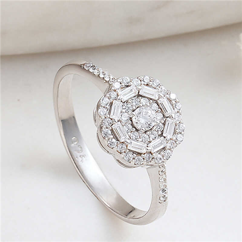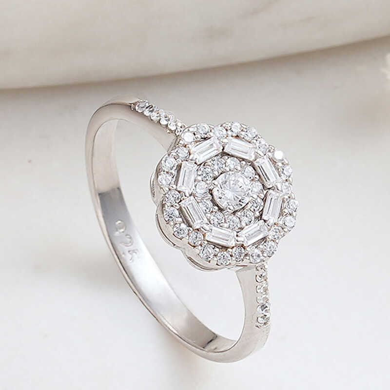 Silver Zircon Stone Flower Women's RingThis specially designed flower women's ring, composed of zircon and tiny baguette stones, is made of 925 sterling silver. You can make your first love, your mother, your wife or your lover, feel how much you love them on special occasions and make them happy. Show how much they add to your life with this ring that your loved ones will love to use. The silver zircon stone flower women's ring model is rhodium plated. All silver ring models with rhodium plating preserve their shine for a long time and oxidation is delayed. Like all silver women's ring models, the silver zircon stone flower women's ring is also handmade. Due to silver and precious stones, there may be a ± 10% deviation in the average product weight.Ring Width: 2.00 cmRing Length: 2.50 cmRing Weight: 2.00 gr.