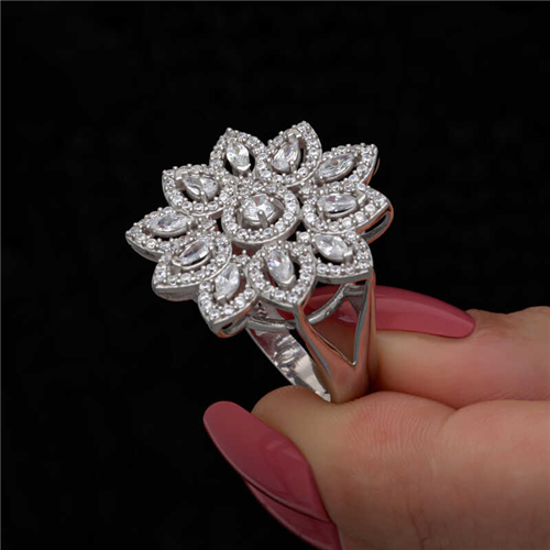 Silver Zircon Stone Flower Women's RingThis specially designed flower women's ring, composed of zircon and tiny baguette stones, is made of 925 sterling silver. You can make your first love, your mother, your wife or your lover, feel how much you love them on special occasions and make them happy. Show how much they add to your life with this ring that your loved ones will love to use. The silver zircon stone flower women's ring model is rhodium plated. All silver ring models with rhodium plating preserve their shine for a long time and oxidation is delayed. Like all silver women's ring models, the silver baguette stone flower women's ring is produced by hand. Due to silver and precious stones, there may be a ± 10% deviation in the average product weight.Ring Width: 2.40 cmRing Length: 2.70 cmAverage Weight: 7.10 gr.