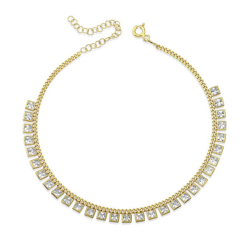 Gurmet Chained Square Zircon Stone Gold Anklet Anklet models, indispensable for your authentic style, are now compatible with every style. These designs, which will instantly match all clothing styles from classic to sporty, bohemian to masculine, will impress you with their flawless workmanship. You can choose the model that appeals to you from options using timeless shapes such as hearts, evil eye beads, stars, and flowers. At the same time, designs that combine many different shapes in a single design and create an elegant look with their thin chains are offered to you. Don't deprive your ankles of this elegance and visit our anklet section to choose your favorite model. Gurmet chained square zircon stone gold-plated anklet is made of 925 sterling silver. Gold plated on silver. All of our products are hand-made. Due to silver and precious stones, there may be a ± 10% deviation in product weight. Width: 0.50 cm Average Weight: 5.90 gr. Length: 26.00 cm