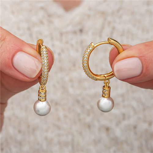 Gold Hoop Pearl Earrings with Silver Zircon Stone Pearl symbolizes simplicity and humility. Although it looks plain, it actually means being very precious. Pearl is the best way to express your love and feelings for your lover. It is the symbol of shine, light, enlightenment and hope. How about making your feelings felt on the skin of the woman you love with silver pearl earrings that will never go out of style and that every woman should have among her accessories... Made of 925 sterling silver. Gold plated on silver. Gold plated silver pearl earrings preserve their shine for a long time and delay oxidation. The stone on them is cultured pearl. All of our products are handmade. Due to silver and precious stones, there may be a ± 10% deviation in the average product weight. Width: 0.80 cm Length: 3.00 cm Average Weight: 6.00 gr.