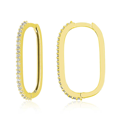 Silver Zircon Stone Hoop Earrings for WomenZircon stone hoop earrings, which you can use in all areas of life, are waiting for you to add sparkle and elegance to your outfits. Different trendy designs are released every year. This year's most popular models stand out as multi-stone products. You can add these stylish earrings to your jewelry box or consider them as a gift for a loved one. The stylish zircon stone hoop earrings are made of 925 sterling silver. Gold plated silver. Gold plated silver earrings preserve their shine for a long time and oxidation is delayed. The stones on them are zircon. Like all women's silver products, silver row stone hoop earrings are produced by hand. Due to silver and precious stones, there may be a ± 10% deviation in the average product weight.Earring Thickness: 0.20 cmEarring Diameter: 2.80 cmAverage Weight: 3.00 gr.