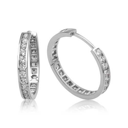 Silver Zircon Stone Hoop Earrings for WomenYou can use these stylish and sporty hoop earrings very easily in everyday life. Silver hoop women's earrings are a perfect option for a birthday gift, Valentine's Day gift or as a gift for mothers on special occasions. Silver hoop women's earrings are made of 925 sterling silver. Rhodium plated on silver. Rhodium plated silver hoop women's earrings preserve their shine for a long time and oxidation is delayed. As with all women's earrings, silver zircon stone hoop women's earrings are handmade. Due to silver and precious stones, there may be ± 10% deviation in the average product weight.Earring Thickness: 0.40 cmEarring Diameter: 2.40 cmAvg. Weight: 4.40 gr.