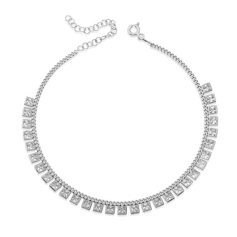 Silver Gourmet Chain Square Zircon Stone Rhodium Anklet Anklet models, indispensable for your authentic style, are now compatible with every style. These designs, which will instantly match all clothing styles from classic to sporty, bohemian to masculine, will impress you with their flawless workmanship. You can choose the model that appeals to you from the options using timeless shapes such as hearts, evil eye beads, stars and flowers. At the same time, designs that combine many different shapes in a single design and create an elegant look with their thin chains are offered to you. Don't deprive your ankles of this elegance and visit our anklet section to choose your favorite model. The gurmet chain square zircon stone rhodium anklet is made of 925 sterling silver. The silver is rhodium plated. All of our products are hand-made. Due to silver and precious stones, there may be a ± 10% deviation in product weight. Width: 0.50 cm Average Weight: 5.90 gr. Length: 26.00 cm