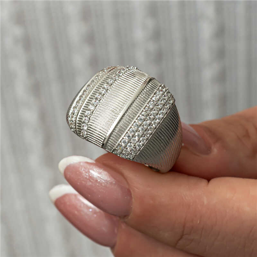 Silver Zircon Stone Women's RingSilver rings are the most preferred silver jewelry models preferred by urban women who take care of themselves and embrace being stylish. A wide range of stylish silver women's ring models, from modern to classic, have been prepared specially for you and your loved ones. The white stones on the zircon stone women's ring model made of 925 sterling silver are zircon. The ring is rhodium plated. Rhodium plated silver women's ring models preserve their shine for a long time and oxidation is delayed. Like all women's ring models, the silver zircon stone women's ring model is produced by hand. Due to silver and precious stones, there may be a ± 10% deviation in the average product weight.Ring Width: 2 cmRing Length: 2 cmAverage Weight: 4.65 gr