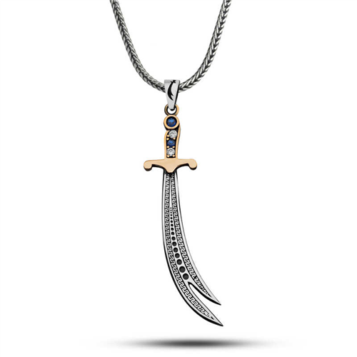 Silver Zircon Stone Zulfiqar Sword Men's Necklace Silver Zircon Stone Zulfiqar Sword Men's Necklace generally has a design that resembles the Zulfiqar sword in terms of its shape. Zulfiqar is an important symbol in Islamic history and is considered to have belonged to Hz. Ali. This sword is seen as a symbol of justice, courage, and strength. Wearing this type of necklace can give a person many values. The Zulfiqar sword also symbolizes the ability to overcome difficulties. This stylish necklace is an excellent option for a birthday gift, Valentine's Day or Father's Day. The silver is oxidized. Like all silver necklaces, the silver Zulfiqar sword necklace model is also hand-crafted. Due to silver and precious stones, there may be ± 10% deviation from the average product weight. Width: 1.50 cm Length: 7.50 cm Chain Length: 55 cm Average Weight: 13.00 gr.