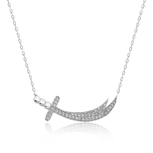 Silver Zulfiqar Sword Women's Necklace According to historians, the Malik of Egypt Mukavkas gave this sword as a gift to the Prophet Muhammad. When Amru bin Adud wanted a warrior to oppose him in battle, the Prophet gave this sword to Ali and allowed him to face him. It is said that Hz. Ali killed nine of the leading warriors of the Quraysh in the Battle of Uhud and that he defended Hz. Muhammad until the last moment, receiving seventy wounds in this battle. For this reason, Gabriel said, “There is no sword sharper than Zulfiqar and no hero greater than Ali.” It is narrated that he said "There is no fata but Ali, there is no seyfe but Zulfikar." It is stated that he was thrown into the sea in Najaf upon Ali's will. Zulfikar sword women's necklace model is made of 925 sterling silver. Rhodium plated silver. Rhodium plated silver women's necklace models preserve their shine for a long time. As with all of our products, the silver zulfikar sword women's necklace model is also handmade. Due to silver and precious stones, there may be ± 10% deviation from the average product weight. Width: 3.50 cm. Length: 1.00 cm. Average Weight: 2.50 gr.