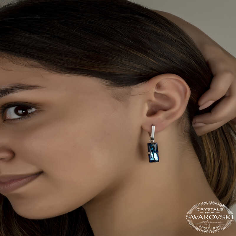 Swarovski Crystal Stone Silver Blue Baguette Dangle Women's Earrings Swarovski stone takes its name from the Swarovski company, founded by Daniel Swarovski (1862 - 1956) in the late 19th century. Swarovski stones are not real diamonds. They are stones that are achieved by applying special cutting techniques to crystal stones and giving them a smooth appearance. Swarovski is a global brand used especially in jewelry. Although it is not a substitute for diamonds, Swarovski, which creates a distinct beauty in jewelry, is a man-made crystal stone, while diamonds are a natural stone and reflect a natural sparkle. These are earrings that you will enjoy using in your daily life and that you can create various combinations to reflect your style with its different design. The Swarovski Silver Crystal Stone and Silver Blue Baguette Dangle Earrings for Women will be a wonderful gift that both you and your loved ones will enjoy wearing. The earrings are made of 925 sterling silver. The silver is rhodium-plated. Rhodium-plated silver earrings retain their shine for a long time and oxidation is delayed. The crystal stone on them is glass. Like all of our silver earrings, the Swarovski Silver Crystal Stone and Silver Blue Baguette Dangle Earrings for Women are also handcrafted. Due to silver and precious stones, there may be ± 10% deviation from the average product weight. Width: 0.70 cm Height: 4.50 cm Average Weight: 6.70 gr.