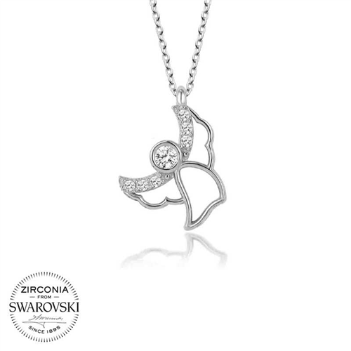 Swarovski Stone Silver Angel Women's Necklace Swarovski stone takes its name from the Swarovski company, founded by Daniel Swarovski (1862 - 1956) at the end of the 19th century. Swarovski stones are not real diamonds. They are stones that are achieved by applying special cutting techniques to crystal stones and giving them a smooth appearance. Swarovski is a global brand used especially in jewelry. Although it is not a substitute for diamonds, Swarovski, which creates a distinct beauty in jewelry, is a man-made crystal stone, while diamonds are a natural stone and reflect a natural sparkle. It is a necklace that you will enjoy using in daily life and that you can create various combinations to reflect your style with its different design. A silver Angel necklace with Swarovski stones will be a wonderful gift for you and your loved ones, and it will be a delight to wear. The necklace is made of 925 sterling silver. The silver is rhodium-plated. Rhodium-plated silver necklaces retain their shine for a long time and slow oxidation. The stone on the necklace is glass. Like all silver necklaces, this silver Angel necklace with Swarovski stones is also handcrafted. Due to silver and precious stones, there may be ± 10% deviation from the average product weight. Width: 1.40 cm Height: 1.60 cm Average Weight: 2.20 gr. Chain Length: 50 cm