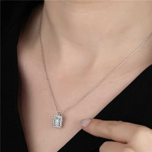 Swarovski Stone Silver Baguette Women's Necklace Swarovski stone takes its name from the Swarovski company, founded by Daniel Swarovski (1862 - 1956) at the end of the 19th century. Swarovski stones are not real diamonds. They are stones that are achieved by applying special cutting techniques to crystal stones and giving them a smooth appearance. Swarovski is a global brand used especially in jewelry. Although it is not a substitute for diamonds, Swarovski, which creates a distinct beauty in jewelry, is a man-made crystal stone, while diamonds are a natural stone and reflect a natural sparkle. It is a necklace that you will enjoy using in daily life and that you can create various combinations to reflect your style with its different design. A silver baguette necklace with Swarovski stones will be a wonderful gift for you and your loved ones, and it will be a delight to wear. The necklace is made of 925 sterling silver. The silver is rhodium-plated. Rhodium-plated silver necklaces retain their shine for a long time and slow oxidation. The stone is glass. Like all silver necklaces, this silver baguette necklace with Swarovski stones is also handcrafted. Due to silver and precious stones, there may be ± 10% deviation from the average product weight. Width: 0.90 cm Height: 1.20 cm Average Weight: 2.54 gr. Chain Length: 50 cm