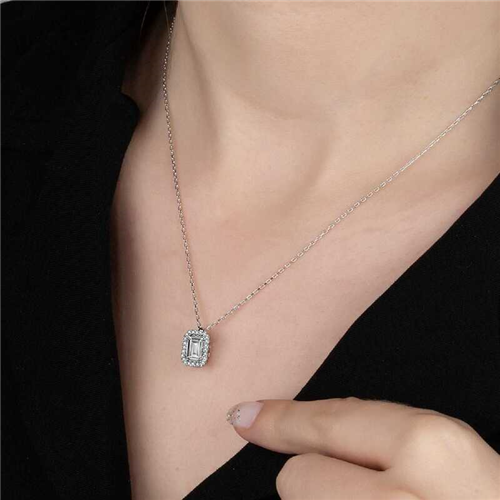 Swarovski Stone Silver Baguette Women's Necklace Swarovski stone takes its name from the Swarovski company, founded by Daniel Swarovski (1862 - 1956) at the end of the 19th century. Swarovski stones are not real diamonds. They are stones that are achieved by applying special cutting techniques to crystal stones and giving them a smooth appearance. Swarovski is a global brand used especially in jewelry. Although it is not a substitute for diamonds, Swarovski, which creates a distinct beauty in jewelry, is a man-made crystal stone, while diamonds are a natural stone and reflect a natural sparkle. It is a necklace that you will enjoy using in daily life and that you can create various combinations to reflect your style with its different design. A silver baguette necklace with Swarovski stones will be a wonderful gift for you and your loved ones, and it will be a delight to wear. The necklace is made of 925 sterling silver. The silver is rhodium-plated. Rhodium-plated silver necklaces retain their shine for a long time and slow oxidation. The stone is glass. Like all silver necklaces, this silver baguette necklace with Swarovski stones is also handcrafted. Due to silver and precious stones, there may be ± 10% deviation from the average product weight. Width: 0.90 cm Height: 1.20 cm Average Weight: 2.78 gr. Chain Length: 50 cm