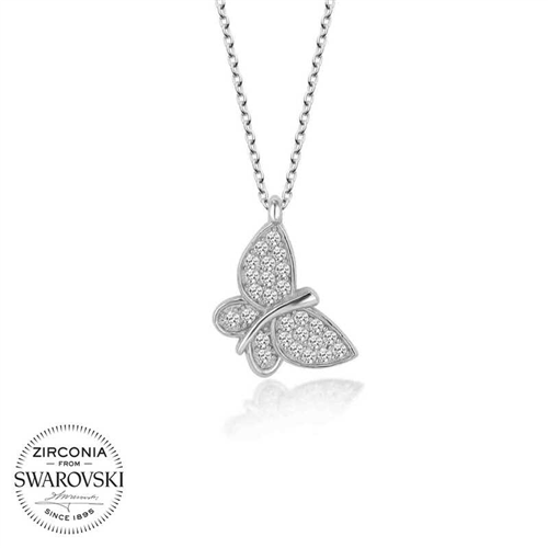 Swarovski Stone Silver Butterfly Women's Necklace Swarovski stone takes its name from the Swarovski company, founded by Daniel Swarovski (1862 - 1956) at the end of the 19th century. Swarovski stones are not real diamonds. They are stones that are achieved by applying special cutting techniques to crystal stones and giving them a smooth appearance. Swarovski is a global brand used especially in jewelry. Although it is not a substitute for diamonds, Swarovski, which creates a distinct beauty in jewelry, is a man-made crystal stone, while diamonds are a natural stone and reflect a natural sparkle. It is a necklace that you will enjoy using in daily life and that you can create various combinations to reflect your style with its different design. A Swarovski crystal-studded silver butterfly necklace will be a wonderful gift for both you and your loved ones. The necklace is made of 925 sterling silver. The silver is rhodium-plated. Rhodium-plated silver necklaces retain their shine for a long time and slow oxidation. The stone on the necklace is glass. Like all silver necklaces, this Swarovski crystal-studded silver butterfly necklace is handmade. Due to silver and precious stones, there may be ± 10% deviation from the average product weight. Width: 1.10 cm Height: 1.30 cm Average Weight: 2.10 gr. Chain Length: 50 cm