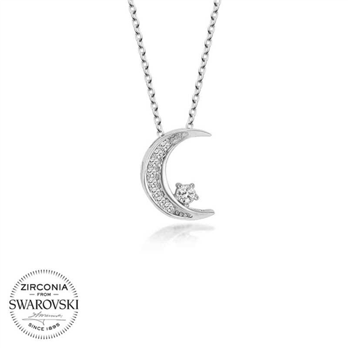 Swarovski Stone Silver Crescent Star Women’s Necklace