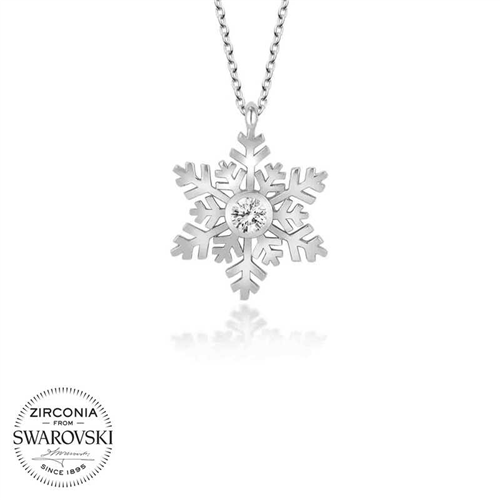 Swarovski Stone Silver Snowflake Women's Necklace Swarovski stone takes its name from the Swarovski company founded by Daniel Swarovski (1862 - 1956) at the end of the 19th century. Swarovski stones are not real diamonds. They are stones that are achieved by applying special cutting techniques to crystal stones and giving them a smooth appearance. Swarovski is a global brand used especially in jewelry. Although it is not a substitute for diamonds, Swarovski, which creates a distinct beauty in jewelry, is a man-made crystal stone, while diamonds are a natural stone and reflect a natural sparkle. It is a necklace that you will enjoy using in daily life and that you can create various combinations to reflect your style with its different design. A silver snowflake necklace with Swarovski stones will be a wonderful gift for you and your loved ones, and it will be a delight to wear. The necklace is made of 925 sterling silver. The silver is rhodium-plated. Rhodium-plated silver necklaces retain their shine for a long time and slow oxidation. The stone on the necklace is glass. Like all silver necklaces, this silver snowflake necklace with Swarovski stones is also handcrafted. Due to silver and precious stones, there may be ± 10% deviation from the average product weight. Width: 1.60 cm Height: 1.90 cm Average Weight: 2.60 gr. Chain Length: 50 cm