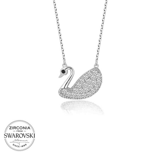 Swarovski Stone Silver Swan Women's Necklace Swarovski stone takes its name from the Swarovski company, founded by Daniel Swarovski (1862 - 1956) at the end of the 19th century. Swarovski stones are not real diamonds. They are stones that are achieved by applying special cutting techniques to crystal stones and giving them a smooth appearance. Swarovski is a global brand used especially in jewelry. Although it is not a substitute for diamonds, Swarovski, which creates a distinct beauty in jewelry, is a man-made crystal stone, while diamonds are a natural stone and reflect a natural sparkle. It is a necklace that you will enjoy using in daily life and that you can create various combinations to reflect your style with its different design. A silver Swan necklace with Swarovski stones will be a wonderful gift for both you and your loved ones. The necklace is made of 925 sterling silver. The silver is rhodium-plated. Rhodium-plated silver necklaces retain their shine for a long time and slow oxidation. The stone is glass. Like all silver necklaces, this silver Swan necklace with Swarovski stones is also handcrafted. Due to silver and precious stones, there may be ± 10% deviation from the average product weight. Width: 2.00 cm Height: 1.80 cm Average Weight: 3.38 gr. Chain Length: 50 cm