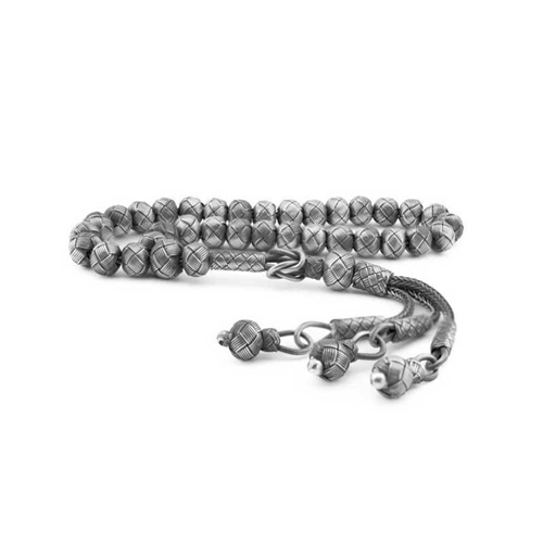 Silver Oxidized Trabzon Kazaziye Prayer Beads Completely handcrafted and very valuable, Kazaziye prayer beads are crafted with the traditional jewelry art of Trabzon. They can be made in gold and silver. This prayer bead model is made of 925 sterling silver. Oxidized silver is coated. Oxidized silver Kazaziye prayer beads achieve an authentic appearance and delay tarnishing. The silver oxidized Trabzon Kazaziye prayer beads are an excellent choice for birthday gifts, Valentine's Day gifts or special occasions. Due to silver and precious stones, there may be a ± 10% deviation from the average product weight. Width: 0.80 cm Length: 22.50 cm Average Weight: 37.00 gr.