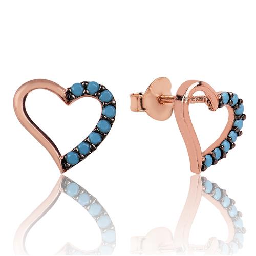 Silver Heart Studded Earrings Let your love come to life on the skin of the woman you love with the heart-shaped women's earrings that express love with their heart pattern. These stylish earrings are made of 925 sterling silver. The silver heart-shaped women's earrings, which will be worn by both you and your loved ones, are a perfect option as a birthday gift, Valentine's Day gift or a gift for mothers on special occasions. Rose plating is used on the silver. Rose-plated women's earrings preserve their shine for a long time, turn the silver into a pink color and delay oxidation. The stones on them are turquoise. Like all silver women's earrings, the silver heart-shaped women's earrings are handmade. Due to silver and precious stones, there may be a ± 10% deviation in the specified product weight.Average Weight: 1.00 gr.