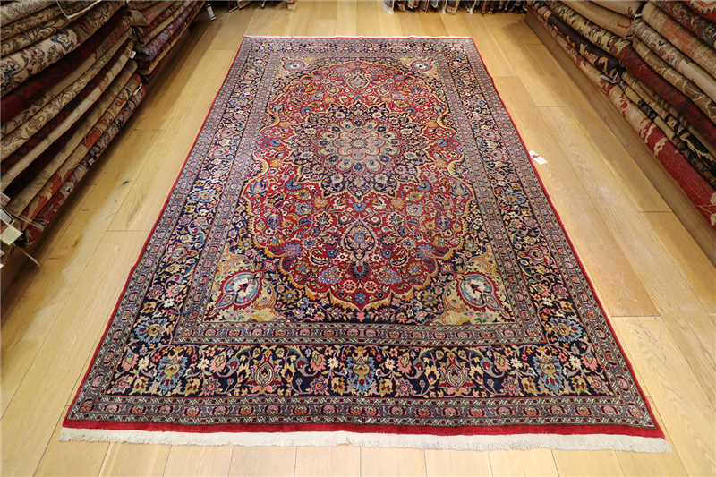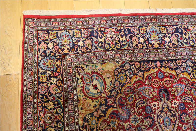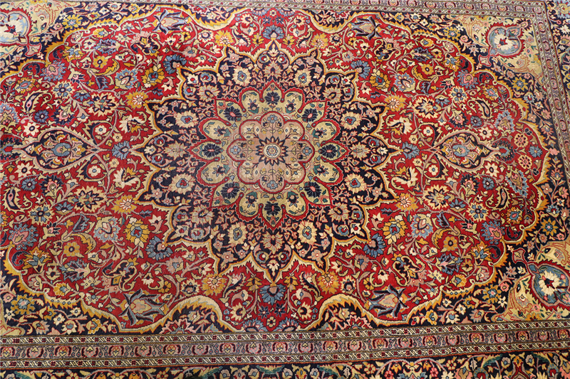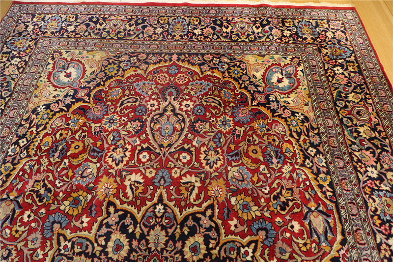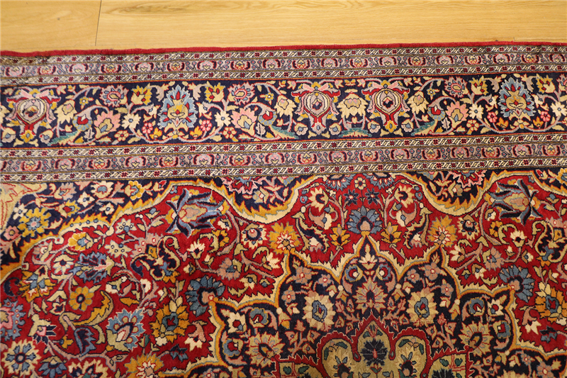 This particular rug is approximately 65 to 70 years old. It’s in very good condition overall, with some normal wear and tear in certain spots.
