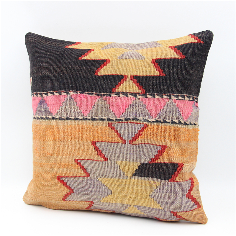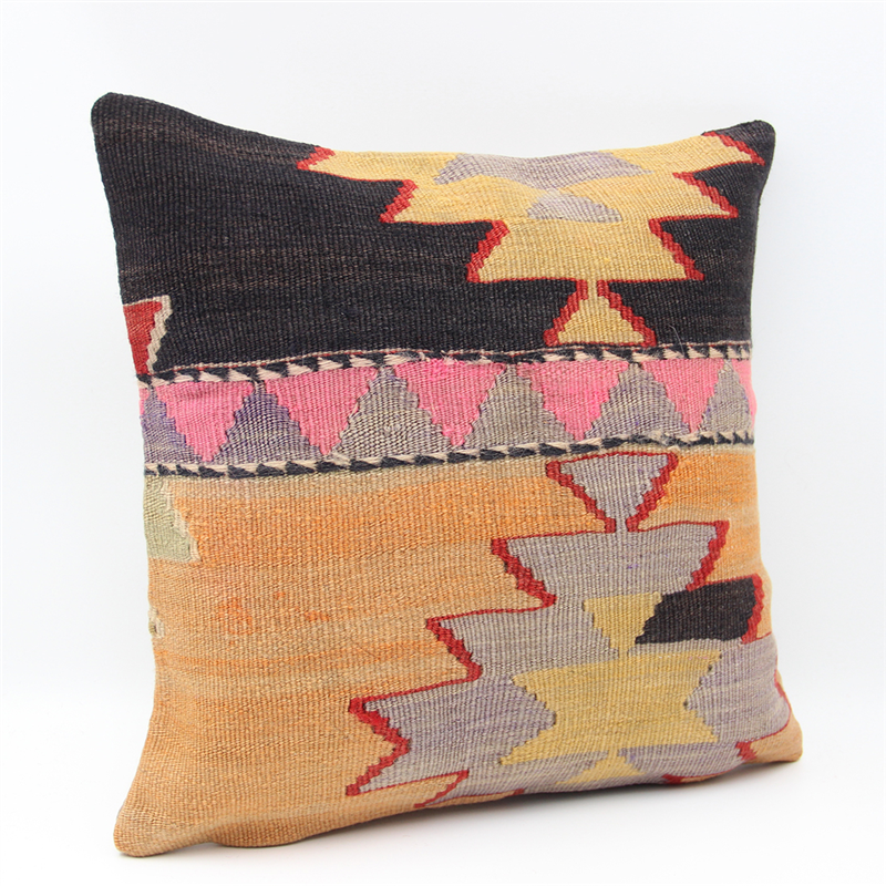 Kilims used in our products are old and genuine. These Kilim Cushions are made with pieces of carpets and Kilims joined to make Kilim Cushion Covers. Kilim Cushion Covers can be made for order for any size. Back has Strong cotton with zipper.
