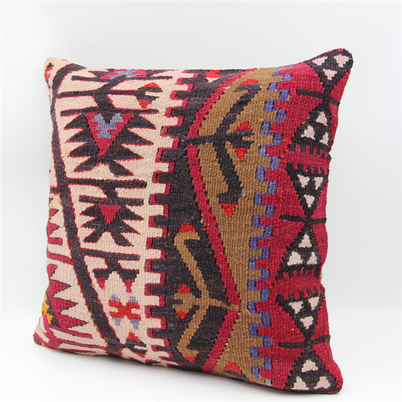 Kilims used in our products are old and genuine. These Kilim Pillows are made with pieces of carpets and kilims joined to make Kilim Cushion Covers. Kilim Cushions can be made for order for any size. Back has cotton with a zipper.